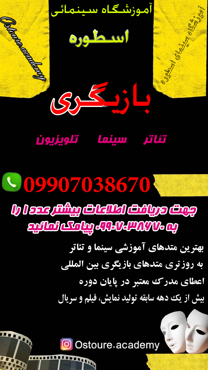 همراه با اعطای مدرک معتبر در پایان دوره الزامات بازیگری مقابل دوربین، آموزش بازیگری، کلاس بازیگری، فراخوان بازیگری، تست بزیگری